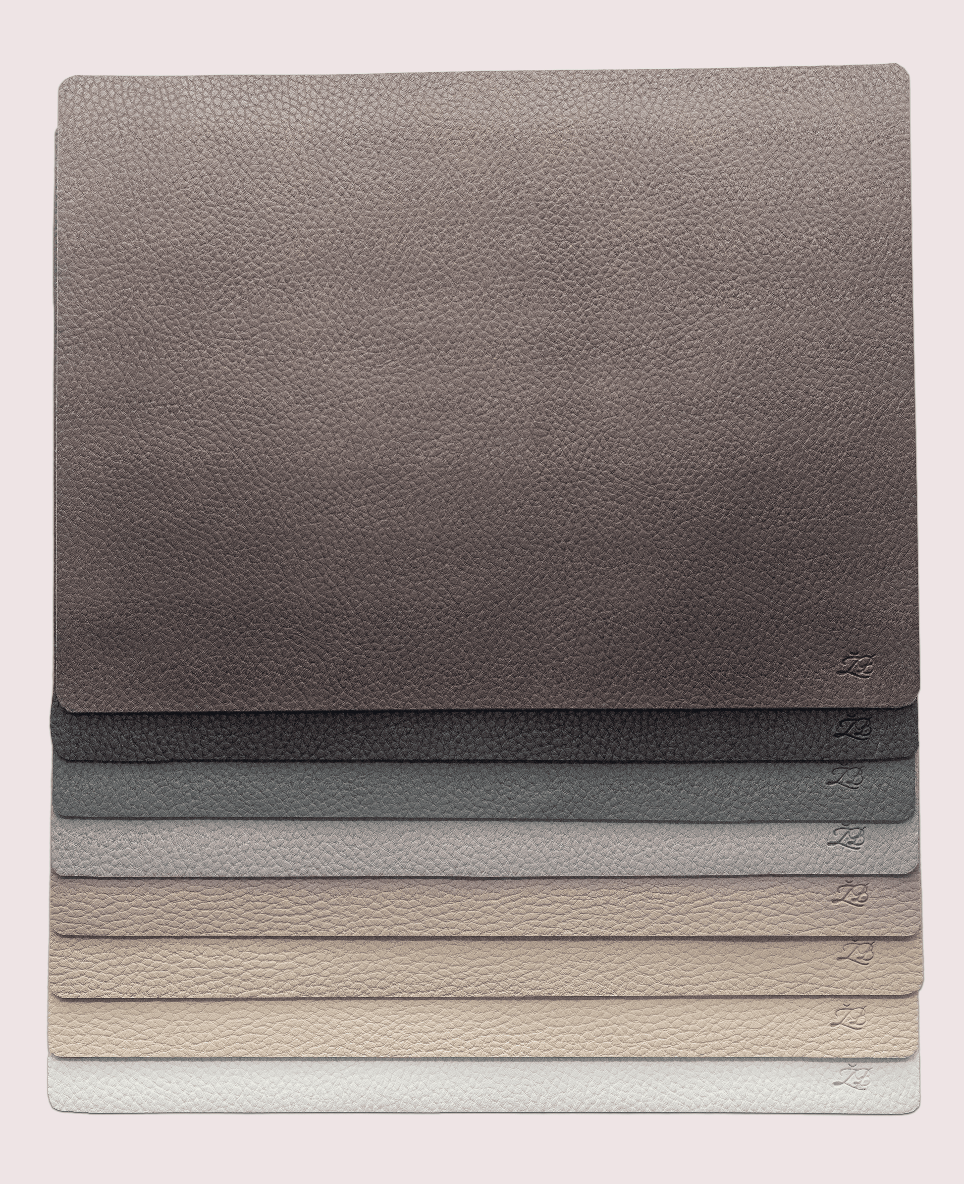 Stačiakampis tamsiai rudos spalvos stalo padėkliukas su logotipu. Pagamintas iš eko odos, lengvai valomas ir praktiškas kasdieniam naudojimui.